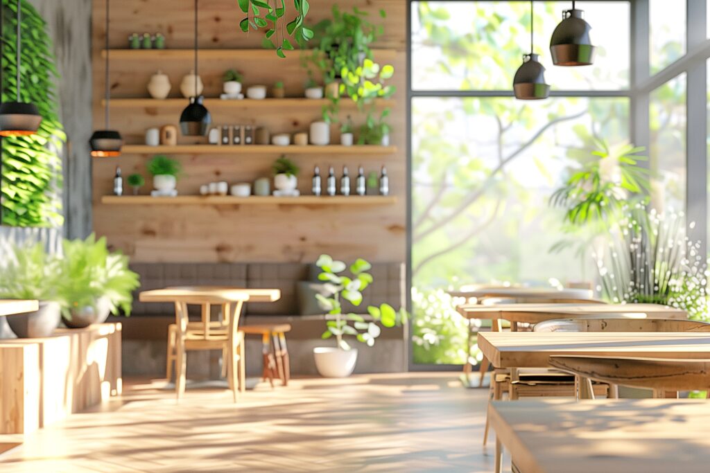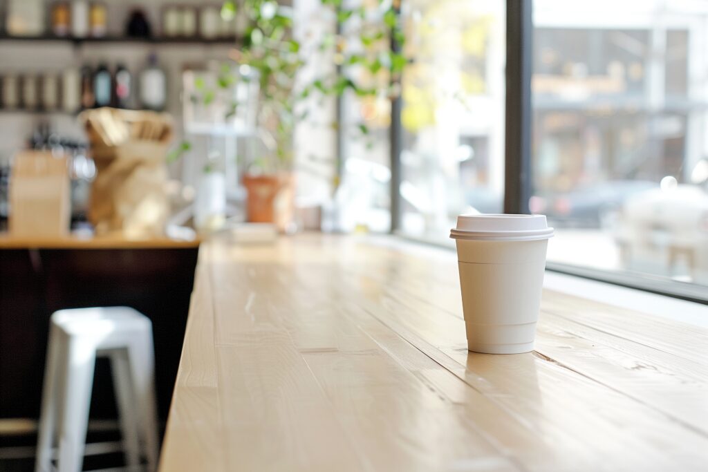 テイクアウトカップには生分解性素材を使用し、店内ではリユースカップを採用しています。